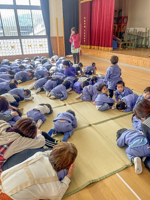 消防士さんに来ていただきました。地震・津波の訓練を行いました。